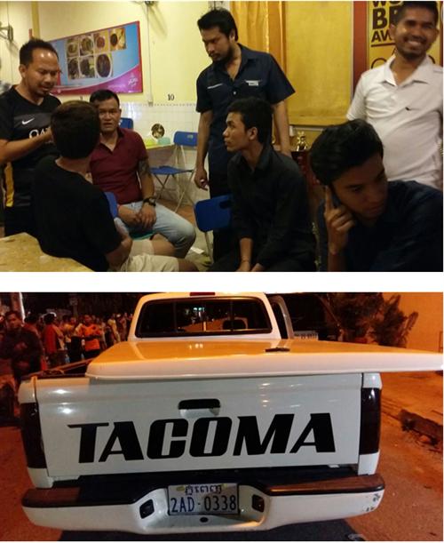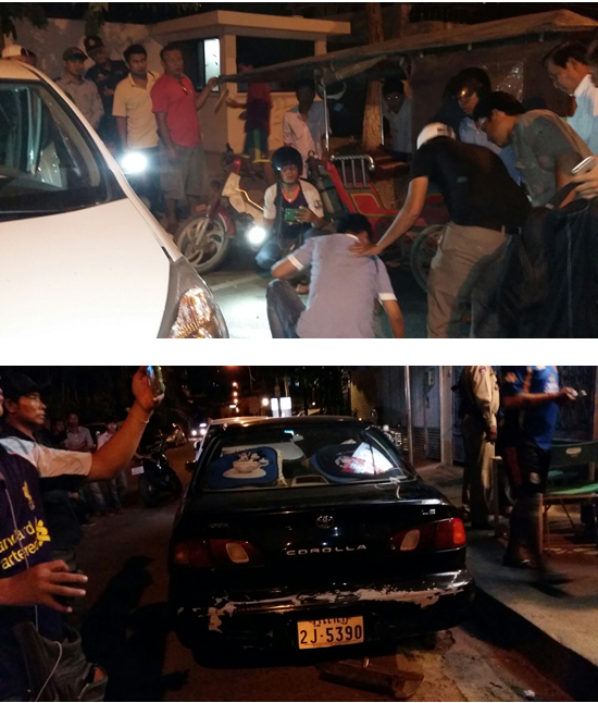 យោងតាមព័ត៌មានពីសាក្សីបាននិយាយថា មុនពេលកើតហេតុ គេបានឃើញរថយន្ដ មួយគ្រឿងម៉ាក តាកូម៉ា ពណ៌ស ពាក់ស្លាក លេខ ភ្នំពេញ 2AD-0338 បានធ្វើដំណើរតាម បណ្ដោយផ្លូវព្រះនរោត្ដម ក្បែរវិមានឯករាជ្យ បានទៅបុករថយន្ដកូរ៉េមួយគ្រឿង ពាក់ ស្លាកលេខ ភ្នំពេញ 2AC-4307 បណ្ដាលឱ្យ ខូចខាតមួយចំហៀងខាងឆ្វេង។