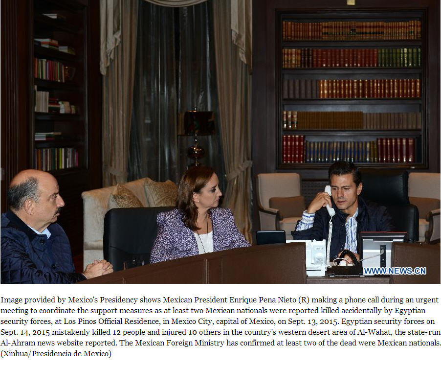 ព័ត៌មានអន្តរជាតិ ៖ រដ្ឋាភិបាល ប្រទេសម៉ិចសិក អំឡុងថ្ងៃច័ន្ទ ម្សិលមិញនេះ ទាមទារ ដោយតម្រូវ អោយ រដ្ឋាភិបាល ប្រទេស អេហ្ស៊ីប បើកការ ស៊ើប អង្កេត ស៊ីជម្រៅ ទៅលើ ការវាយប្រហារ ទាំង ងងឹតងងុល ច្រឡំ ចំក្បួនរថយន្ត ដឹក ភ្ញៀវទេសចរ បរទេស ក្នុងនោះ មានភ្ញៀវទេសចរ ម៉ិចសិក ១៥ នាក់ អោយមានការបកស្រាយ អោយបានច្បាស់លាស់ ។