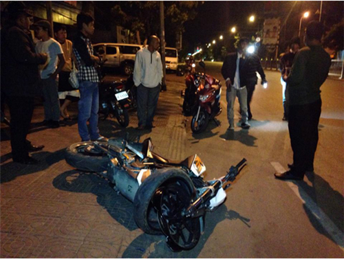 នគរបាលមូលដ្ឋានបានឲ្យដឹងថា បានឲ្យដឹងថា មុនពេលកើតហេតុគេ ឃើញយុវជន ពីរនាក់បើកម៉ូតូឌុបគ្នា ម៉ាក KTM (DUK) អត់មានស្លាកលេខ បើកក្នុងទិស ដៅពីកើតទៅលិច មកភ្លើងស្តុបពេទ្យចិន ខណ:មកដល់ចំណុចកើតហេតុអ្នកបើកម៉ូតូ បានជ្រុលចង្កូត មកខាងឆ្វេងដៃទៅបុករះរនាំងដែកចែកទ្រូងផ្លូវបណ្តាលឲ្យអ្នក បើកម៉ូតូផ្លោងចេញ ពីម៉ូតូអូសនឹងរនាំងដែរ របួសធ្ងន់ទាំងពីរនាក់។