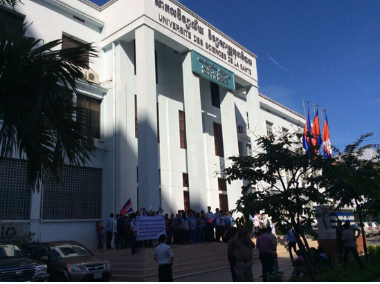 ភ្នំពេញ ៖ និស្សិតសាកល វិទ្យាល័យ វិទ្យាសាស្ដ្រ សុខាភិបាល ជាង៥០នាក់ នៅព្រឹកថ្ងៃទី០៨ ខែមករា ឆ្នាំ២០១៥នេះ បាននាំគ្នាប្រមូលផ្ដុំ នៅមុខសាកលវិទ្យាល័យ របស់ខ្លួន ដើម្បីទាមទារឱ្យប្រមុខនៃរាជរដ្ឋា ភិបាល សម្ដេចតេជោ ហ៊ុន សែន ជួយអន្ដរាគមន៍ បញ្ចុះតម្លៃនៃការប្រឡង ថ្នាក់ជាតិ ១២៥ដុល្លារ មកត្រឹម ៧៥ដុល្លារ ដែលជាតម្លៃថេរ ចាប់ពីឆ្នាំសិក្សានេះ ទៅនិស្សិតជំនាន់ក្រោយៗទៀត ។