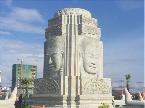 លោកបានបញ្ជាក់ទៀតថា ចម្លាក់ព្រហ្មបាយ័ន យកលំនាំដើមពីប្រាសាទបាយ័ន ក្នុងខេត្តសៀមរាប ដោយធ្វើអំពីថ្មភ្នំ យកពីខេត្តព្រះវិហារ កាត់ឆ្លាក់ដាប់ជាដុំៗ បន្តុបលើគ្នាមានកម្ពស់ ៩,១៨ម៉ែត្រ ទទឹង ៦,៣០ម៉ែត្រ។ រូបចម្លាក់ព្រហ្មបាយ័ន តំណាងឲ្យព្រះភ័ក្រ្តរបស់ព្រះលោកេស្វរៈ ជាព្រះពោធិសត្វ នៃពុទ្ធសាសនាមហាយាន ដែលមានមហាករុណា ចំពោះមនុស្សលោកគ្រប់ទិសទាំង៤ ដែលខ្មែរនិយមហៅថា ព្រហ្មបាយ័ន ឬ ព្រហ្មមុខ៤។