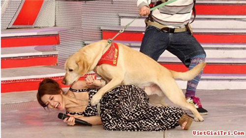4. នាង Loi Tinh ជាពិធីការិនីដ៏ល្បីល្បាញ និងអ្នកថតកម្មវិធីទូរទស្សន៍ ត្រូវបានសត្វឆ្កែ ភ្ញៀវលោតមក កន្ទ្រុបពីលើនាង។