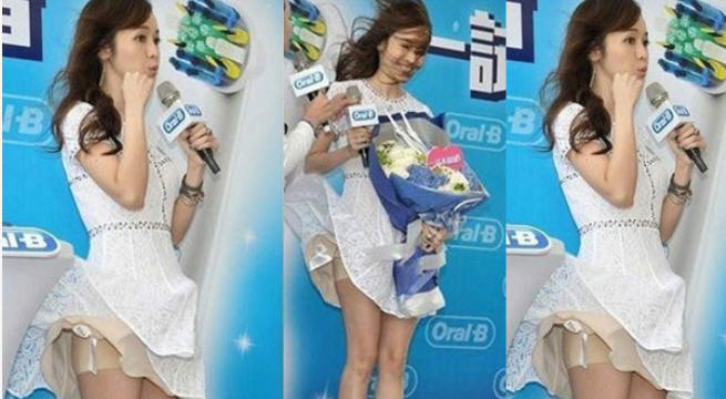 1. នាង Patty Hou ជាពិធីការិនី តែវ៉ាន់ដដ៏ល្បីមួយរូប បានជួបឧប្បត្តិហេតុ ដ៏កម្រ ដោយសារតែមានគេ យកម៉ាស៊ីន ខ្យល់ បក់ធ្វើឲ្យរបូតរ៉ូបរបស់នាង ។
