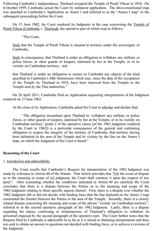 ខាងក្រោមនេះ គឺជាសេចក្តីសម្រេច របស់តុលាការ ICJ លើសំណុំរឿង ប្រាសាទព្រះវិហារ ៖