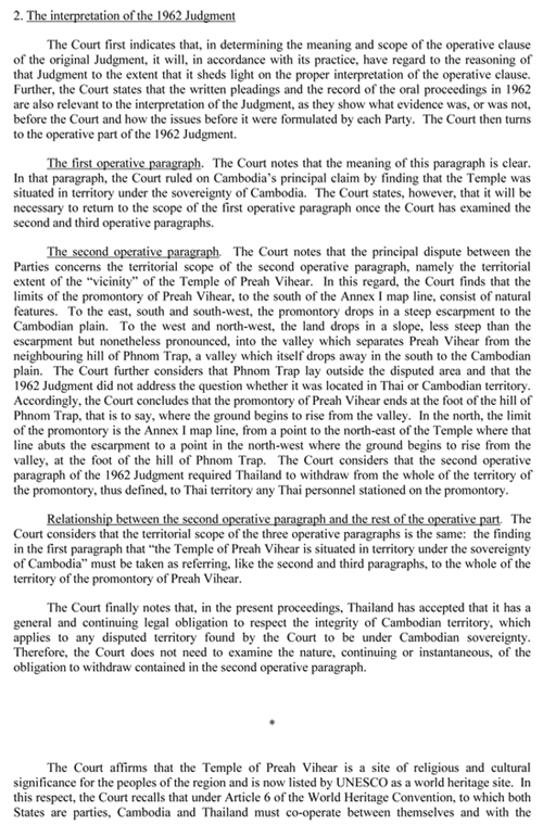 ហើយក្នុងចំណុចទី២នៃ វិធានសាលក្រមឆ្នាំ ១៩៦២ ដែលថា ប្រទេសថៃ មានកាតព្វកិច្ចដកចេញ