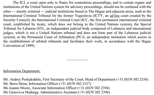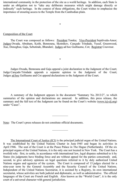 យោងតាមការប្រកាស នៅចំណុច សំខាន់នៅក្នុងសាលដីការបស់តុលាការយុត្ដិ ធម៌អន្ដរជាតិខាង