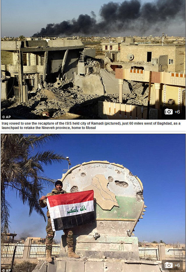 (វ៉ាស៊ីនតោន)៖ មន្ត្រីការពារជាតិជាន់ខ្ពស់ របស់សហរដ្ឋអាមេរិក បានឲ្យដឹងថា នៅថ្ងៃអាទិត្យកន្លងទៅនេះ យន្តហោះចម្បាំងរបស់អាមេរិក បានកម្ទេចមូលដ្ឋាន និងអគារតម្កល់ប្រាក់របស់ក្រុមឧទ្ទាម ISIS នៅក្នុងទីក្រុង Mosul ប្រទេសអ៊ីរ៉ាក់។ នេះបើយោងតាមការ ចេញផ្សាយរបស់ CNN នៅថ្ងៃទី១២ ខែមករា។