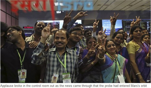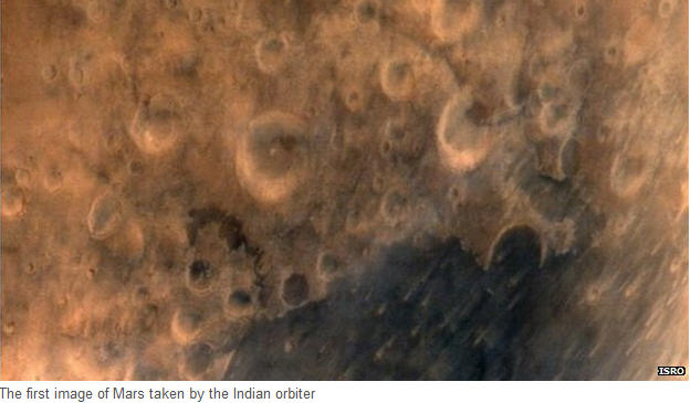 ព័ត៌មានអន្តរជាតិ ៖ ភ្នាក់ងារអវកាសឥណ្ឌាបានបង្ហាញរូបភាព របស់ភពអង្គារជាលើកដំបូង ដែលបានថតដោយប្រព័ន្ធផ្កាយរណប នៅក្នុងបេសកកម្ម ត្រួតពិនិត្យ ភពអង្គារមួយដែល មានឈ្មោះថា "Mangalyaan" បានចូលទៅក្នុងកន្លង ផ្លូវគោចរនៅជុំវិញភព ពណ៌ក្រហមមួយកាលពី ថ្ងៃពុធម្សិលមិញនេះ។