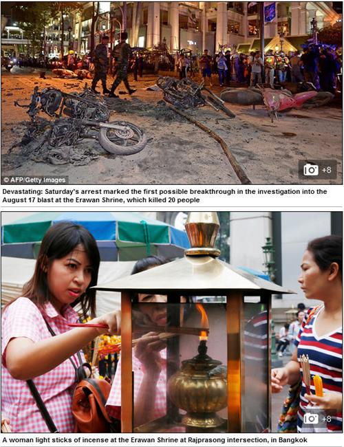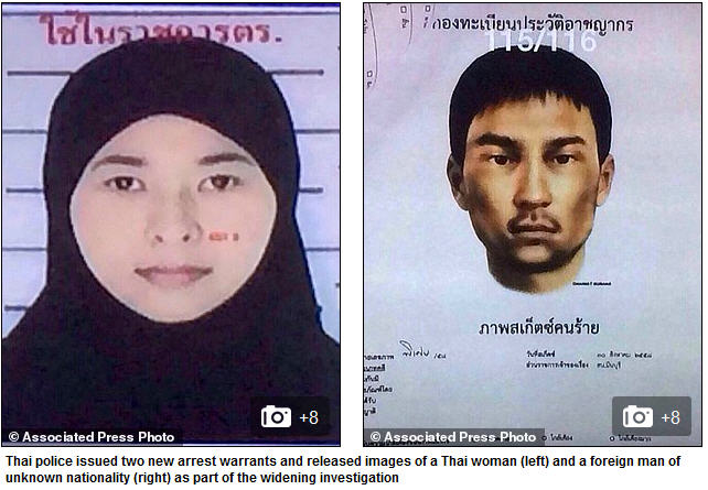 អាជ្ញាធរ ប្រទេសថៃ បានចេញដឺកាចាប់ឃាត់ខ្លួន ជនសង្ស័យថ្មី ២នាក់នេះ ខណៈបានចេញផ្សាយ រូបភាពគំរូ ស្តីពីជនសង្ស័យនោះគឺ ស្រ្តីជនជាតិថៃ និង បុរសជនជាតិបរទេសម្នាក់ផ្សេងទៀត ទាំង២ នាក់គឺជាជនសង្ស័យថ្មី ២នាក់បន្ថែមទៀត ក្រោយពីអាជ្ញាធរថៃ ឆ្មក់ចូល អាគារ រស់នៅមួយកន្លែង និងបានរកឃើញ វត្ថុធាតុដើម ទុកសម្រាប់ផលិតគ្រាប់បែក ។