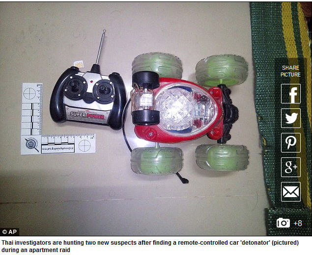 ព័ត៌មានអន្តរជាតិ ៖ ភ្នាក់ងារ ស៊ើបអង្កេត ប្រទេសថៃ កំពុងតែតាម ប្រមាញ់ ជនសង្ស័យបំផ្ទុះគ្រាប់ បែក ២នាក់ ថ្មីផ្សេងទៀត ក្រៅពីជនសង្ស័យបំផ្ទុះគ្រាប់បែកមុនៗ ក្រោយពីបានឆ្មក់ចូល សំណង់អា គាររស់នៅមួយកន្លែង និងបានរកឃើញឡានបញ្ជាមួយគ្រឿង ប្រើសម្រាប់បំផ្ទុះគ្រាប់បែក ។