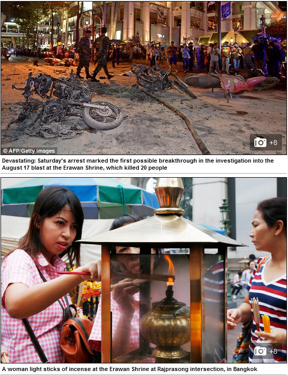 គួរបញ្ជាក់ថា អំឡុងថ្ងៃសៅរ៍ ចុង សប្តាហ៍ ទៅនេះ អាជ្ញាធរ ប្រទេសថៃ បានឆ្មក់ចូល អាគាររស់នៅ មួយ កន្លែង និងបានចាប់ឃាត់ខ្លួន ជន សង្ស័យអទិភាព បំផ្ទុះគ្រាប់បែក នៅកណ្តាលក្រុងបាងកក ខណៈបច្ចុប្បន្នភាព ប៉ូលីស កំពុង តែ សាកសួរចម្លើយ តែមានចេតនា ដូចជា មិនសូវជា សហការ ប៉ុន្មាននោះទេ ៕