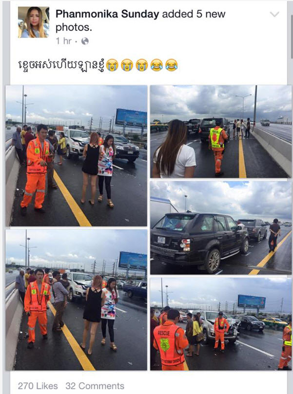 តាមរយៈរូបថតបង្ហោះ នៅលើបណ្តាញទំនាក់ទំនង សង្គមនោះ គេក៏សង្កេតឃើញអ្នក នាង ផាន់ ម៉ូនីកា សរសេរសារបញ្ជាក់ថា «ខ្ទេចអស់ហើយឡានខ្ញុំ…»។ ប៉ុន្តែយ៉ាងគេនៅពុំទាន់ដឹងទេថា នៅក្នុងហេតុការណ៍គ្រោះថ្នាក់ មិនបង្កឲ្យសមាជិកគ្រួសារ របស់តារាចម្រៀង ផាន់ ម៉ូនីកា ណាមួយមានរបួសធ្ងន់ធ្ងរនោះទេ ព្រោះរថយន្ត២គ្រឿង ដែលដឹកសមាជិកគ្រួសារជិត ១០នាក់នោះ គ្រាន់តែមានរថយន្ត គេជ្រុលបុកពីក្រោយប៉ុណ្ណោះ ។