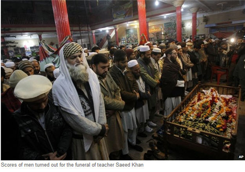 ប្រភពពីទំព័រប៊ីប៊ីស៊ី អោយដឹងថា ហ្វូងមនុស្សជាក្រុមអ្នកកាន់ទុក្ខបានមកប្រមូលផ្តុំគ្នានៅជុំវិញមឈូស ស្របពេលដែលសមាជិកក្រុមគ្រួសារដទៃទៀត កំពុងតែរង់ចាំព័ត៌មានចុងក្រោយ ពីមន្ទីរពេទ្យ ។យ៉ាង ណាមិញ នាយករដ្ឋមន្រ្តីចាំផ្ទះ លោក Nawaz Sharif ចេញសេចក្តីប្រកាសអោយ មានការទុក្ខទូទាំងប្រ ទេសរយៈពេល ៣ ថ្ងៃពេញ ។