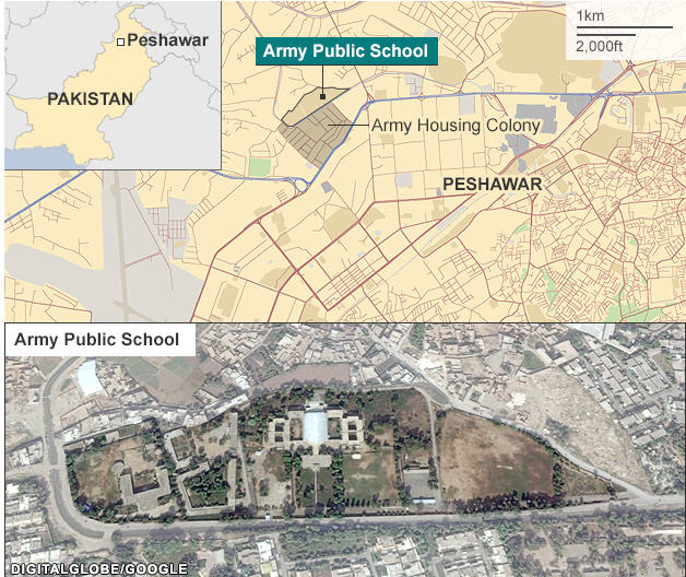 ដោយឡែក មេដឹកនាំពិភពលោក បញ្ជាក់ពីការខ្ពើមរអើមទៅនឹងការវាយប្រហារ អត្តឃាតលើកនេះ ដ៏ សាហាវជាទីបំផុត ខណៈចេញសេចក្តីប្រកាសថ្កោលទោស ក្រុម តាលីបង់ ។ បើ យោងតាមការគូស បញ្ជាក់ពីយោធាអោយដឹងថា ការវាយប្រហារអត្តឃាត អំឡុងថ្ងៃអង្គារ កន្លងទៅនេះ គឺត្រូវបានវាយប្រ ហារពីសំណាក់ សមាជិកក្រុមឧទ្ទាម តាលីបង់ ៧ នាក់ ខណៈពួកគេ ខ្លួន ប្រដាប់ដោយ សុទ្ធតែគ្រាប់ បែកនិងគ្រឿងបំផ្ទុះ ។ ពួកគេបានសម្រុកចូល បរិវេណសាលា រួចធ្វើការវាយប្រហារ ទៅលើសាលប្រជុំ សាលាផ្ទាល់តែម្តង ខណៈទីនោះ សិស្សតូចៗកំពុងតែប្រឡង ក្រោយ ពី ពួកគេសម្រុកចូលសាលាតាម រយៈទ្វារក្រោយ ដោយឆ្លងកាត់លួសបន្លា ។