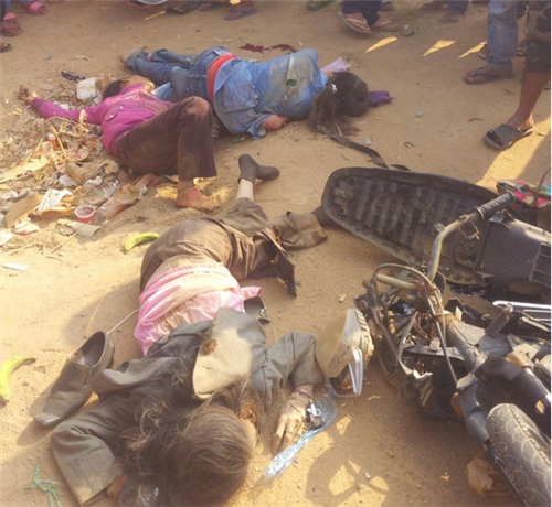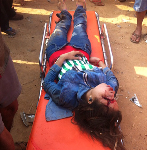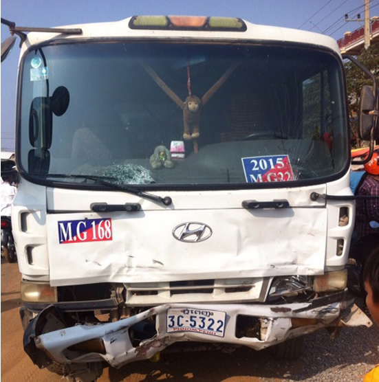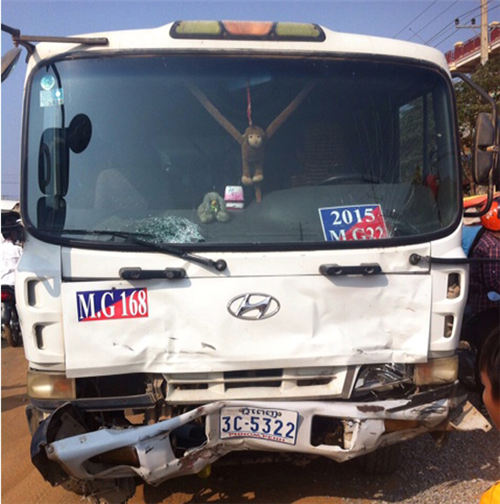 តាមមន្ដ្រីអាវុធហត្ថ ម៉ូតូទាំង៣គ្រឿង រួមមានម៉ាកស្មាស់ ពណ៌ខ្មៅ គ្មានស្លាកលេខ បើកដោយស្ដ្រីម្នាក់ ឈ្មោះញ៉ាន លី អាយុ ២៤ឆ្នាំ រស់នៅភូមិអង្គនន់ ឃុំរលាំងគ្រើល ស្រុកសំរោងទង ពេលកំពុងធ្វើ ដំណើរឆ្លងផ្លូវ ពីត្បូងទៅជើង ហើយស្ដ្រីរូប នេះរងរបួស ស្រាល ទី២ ម៉ូតូម៉ាកវ៉េវអេស ពណ៌ខ្មៅ ពាក់ ស្លាកលេខ ភ្នំពេញ 1E-6001 បើកដោយ ស្ដ្រីម្នាក់ឈ្មោះរី សុភាព អាយុ២៦ឆ្នាំ រស់ នៅភូមិទឹកថ្លា សង្កាត់ទឹកថ្លា ខណ្ឌសែនសុខ រងរបួសធ្ងន់ ហើយអ្នកជិះ ពីក្រោយពីរនាក់ ម្នាក់ឈ្មោះ ជួប បូ ភេទស្រី អាយុ៥៤ឆ្នាំនិង ម្នាក់ទៀតឈ្មោអ៊ឹង សុភក្ដ្រ ភេទស្រី អាយុ ៦៧ឆ្នាំ រស់នៅភូមិសង្កាត់ជាមួយគ្នា ស្លាប់ ទាំងពីរ នាក់តែម្ដង ខណៈដែលជនរងគ្រោះ ឈប់នៅលើចិញ្ចើមផ្លូវ និងទី៣ ម៉ូតូម៉ាក វ៉េវអាល់ហ្វា ពណ៌ខ្មៅ គ្មានស្លាកលេខ បើក ដោយបុរសម្នាក់ឈ្មោះង៉ែត វ៉ាន់ អាយុ២៤ ឆ្នាំ រស់នៅភូមិកាំងទ្រង់ ឃុំតានី ស្រុកអង្គ ជ័យ ខេត្ដកំពត រងរបួសធ្ងន់ ខណៈដែលជន រងគ្រោះ កំពុងធ្វើដំណើរបញ្ច្រាសទិសគ្នា។