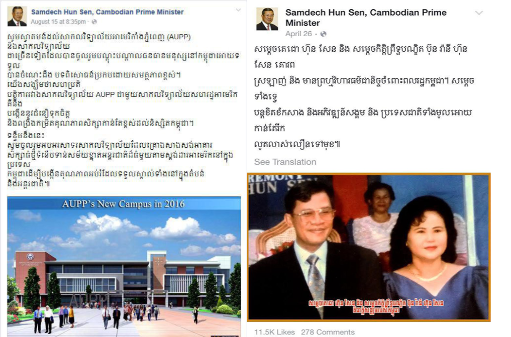 «យើងសង្ឃឹមថា សហប្រតិបត្តិការរវាងសាកលវិទ្យាល័យ AUPP ជាមួយសាកលវិទ្យាល័យសហរដ្ឋអាមេរិក គឺនឹងបង្កើននូវជំនឿទុកចិត្ត និងពង្រឹងកម្រិតគុណភាពសិក្សាឲ្យកាន់តែខ្ពស់ដល់និស្សិតកម្ពុជា» នេះជាការចាប់អារម្មណ៍របស់ សម្តេចតេជោ នៅលើ Facebook ។