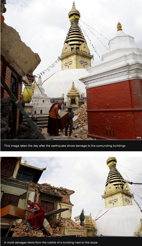 ព័ត៌មានអន្តរជាតិ ៖ ទន្ទឹមនឹងការបាត់បង់អាយុជីវិតមនុស្សជាតិ ដល់ទៅរាប់ ពាន់ នាក់ ច្រើនជាង ៣៥០០ នាក់ក្រោយមានគ្រោះរញ្ជួយដី កាលពីថ្ងៃសៅរ៍ចុងសប្តាហ៍កន្លងទៅនេះ ពិភពលោក ក៏ដូច ជាប្រទេសនេប៉ាល់ខ្លួនឯងផ្ទាល់បានបាត់បង់ផ្នែកខ្លះនៃបេតិកភណ្ឌវប្បធម៌តែមួយគត់របស់ប្រទេស