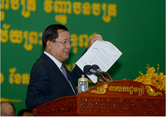 សម្តេច ហ៊ុន សែន បានលើកឡើងយ៉ាងនេះ បន្ទាប់ពីក្រុមតំណាងរាស្រ្តគណបក្សសង្រ្គោះជាតិប្រមាណជា ១០នាក់ បានដាក់ពាក្យបណ្តឹងប្តឹងសម្តេច ហេង សំរិន ប្រធានរដ្ឋសភា ទៅក្រុមប្រឹក្សាធម្មនុញ្ញ ក្នុងករណីសម្តេច ហេង សំរិន មិនព្រមបញ្ជូនពាក្យបណ្តឹងរបស់ពួកគេ ទៅសម្តេចតេជោ ឲ្យផ្អាកបោះបង្គោលព្រំដែនជាបណ្តោះអាសន្នជាមួយវៀតណាម។