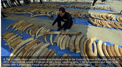 គួរបញ្ជាក់ថា ប្រទេសថៃ គោលដៅ លំដាប់កំពូល និងចម្បង នៃការរត់ពន្ធភ្លុក សត្វខុសច្បាប់ ពីទ្វីប អាហ្រ្វិកនោះ បានបញ្ជប់បេសកម្មរបស់ខ្លួន ចុងខែ មីនា កន្លងទៅនេះ ក្នុង យុទ្ធ នាការ បញ្ជប់អោយ បានការជួញដូរភ្លុកសត្វខុសច្បាប់នក្នុងប្រទេស ក្រុមអនុសញ្ញា ពាណិជ្ជកម្ម អន្តរជាតិ ទៅលើបណ្តា សត្វប្រឈមនឹងការផុតពូជ Convention on the International Trade of Endangered Species (CITES) ។