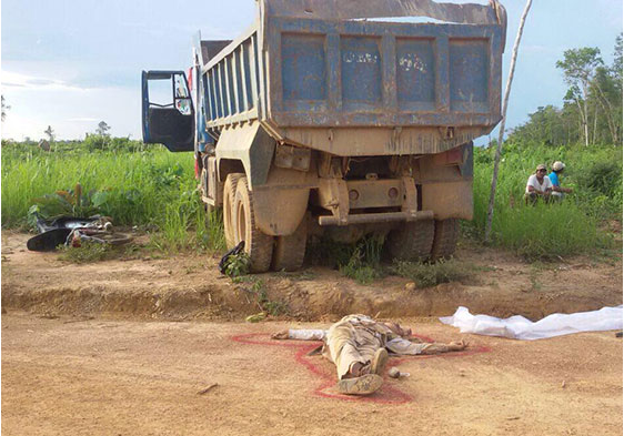 ក្រចេះ៖ នាយរងរដ្ឋបាលព្រៃឈើវឌ្ឍនៈ លោក ថ្លាង គឹមឡុង ត្រូវរថយន្តរបស់ក្រុមហ៊ុន «ស៊ីនបាយអតិច» កិន ស្លាប់បាត់បង់ជីវិត នៅពេលរូបលោកជិះម៉ូតូចុះទៅវាស់វែងដីជូនក្រុមហ៊ុនរបស់កូរ៉េមួយនេះ កាលពីរសៀលថ្ងៃទី ០៥ ខែសីហា ឆ្នាំ២០១៥ ស្ថិតនៅភូមិអាចេន ឃុំកំពង់ចាម ស្រុកកសំបូរ ខេត្តក្រចេះ។