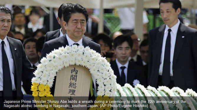 គួរបញ្ជាក់ថា ពិធីរំឭកខួប៧០ឆ្នាំ នៃការទម្លាក់គ្រាប់បែក នុយក្លេអ៊ែរលើទីក្រុងណាហ្កាសាគី ត្រូវបានរៀបចំធ្វើឡើង នៅក្នុងសួន សន្តិភាពណាហ្កាសាគី ក្រោម អធិបតីភាពរបស់លោកស្ហ៊ីនហ្សូ អាបេ និងដោយមាន ការ ចូលរួមពីតំណាងរដ្ឋាភិបាលបរទេសជាច្រើន ក្នុងនោះក៏រួមមានឯកអគ្គ រដ្ឋទូតសហរដ្ឋអាមេរិក Caroline Kennedy ដូចគ្នាដែរ ។ ថ្លែង នៅក្នុងពិធីនោះ លោកស្ហ៊ីនហ្សូ អាបេ បានលើកឡើងថា “ក្នុងឋានៈ ជាប្រទេសតែមួយគត់ក្នុងប្រវត្តិសាស្រ្ត ដែលរងគ្រោះដោយអាវុធនុយក្លេអ៊ែរ ជប៉ុននឹងដើរតួនាទីនាំមុខគេ ក្នុងការលុបបំបាត់អាវុធនុយក្លេអ៊ែរឲ្យ អស់ពីពិភព លោក ហើយជប៉ុននឹងនៅតែប្រកាន់ខ្ជាប់ជានិច្ចនូវគោលការណ៍គ្មាននុយក្លេអ៊ែរ ទាំងបី”។