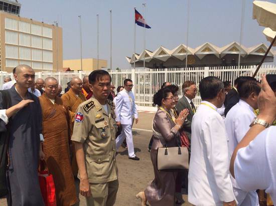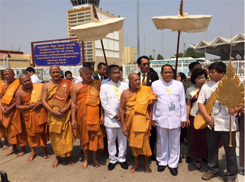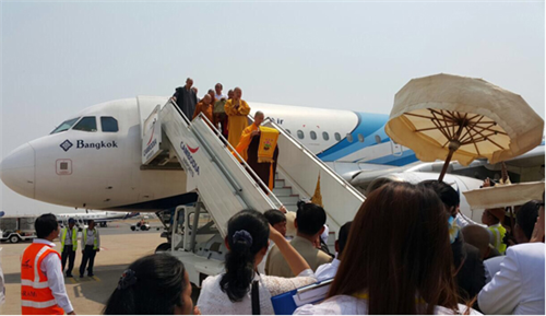 យោងតាមប្រភពព័ត៌មានពីមន្ដ្រីបម្រើ ការងារនៅព្រលានយន្ដហោះអន្ដរជាតិភ្នំពេញ បានឱ្យដឹងថា យន្ដហោះចំនួន ២គ្រឿង របស់ក្រុមហ៊ុនអាកាសចរណ៍បាងកកអ៊ែរវ៉េ តូចមួយគ្រឿង ធំមួយគ្រឿង បានចុះចតនៅ វេលាម៉ោង ១០និង៤២នាទីព្រឹកថ្ងៃទី១៩ ខែមីនា ឆ្នាំ២០១៥ ដែលមានរដ្ឋមន្ដ្រី ក្រសួងធម្មការនិងសាសនា លោកមិន ឃិន និងសម្ដេចសង្ឃដួង ផង់ ព្រមទាំងថ្នាក់ដឹកនាំក្រសួងធម្មការ ក៏ដូចជា ថ្នាក់ដឹកនាំព្រះសង្ឃនៅកម្ពុជា បានអញ្ជើញ និងនិមន្ដទៅទទួលបដិសណ្ឋាកិច្ចនៅព្រលាន យន្ដហោះ ដែលធ្វើឱ្យមានការភ្ញាក់ផ្អើលនិង ចាប់អារម្មណ៍គ្រប់ៗគ្នា ។
