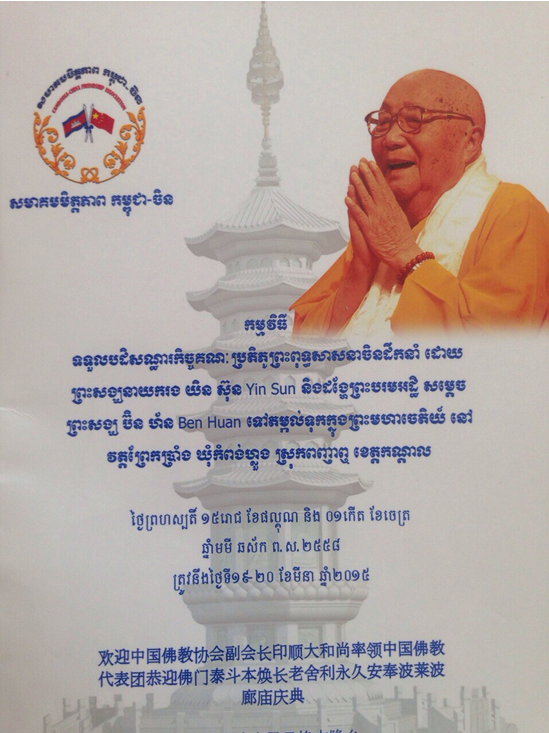 យោងតាមសេចក្ដីប្រកាសរបស់សមាគម មិត្ដភាពកម្ពុជាចិន បានបង្ហាញថា គណៈប្រតិភូព្រះពុទ្ធ សាសនាចិន ដឹក នាំដោយព្រះសង្ឃនាយករង យិន ស៊ុន ព្រមទាំងសហការី ១១៨អង្គនាក់ ដើម្បីដង្ហែ ព្រះបរមអដ្ឋិ សម្ដេចព្រះសង្ឃ ប៊ិន ហ័ន ទៅតម្កល់ទុក ក្នុងព្រះមហាចេតិយ៍នៅវត្ដព្រែកប្រាំង។