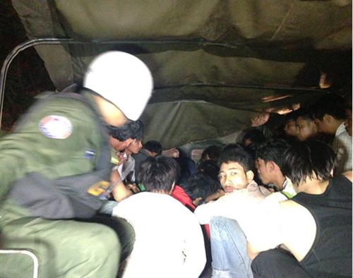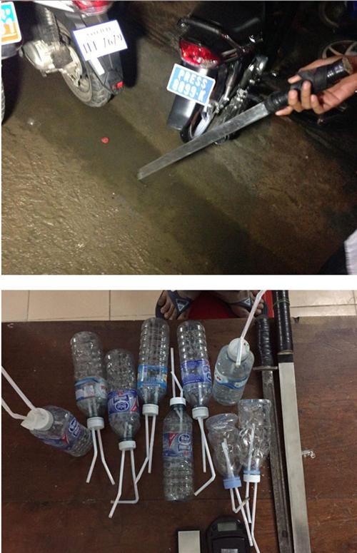 ភ្នំពេញ៖ កម្លាំងអាវុធហត្ថខណ្ឌទួលគោក សហការជាមួយកម្លាំងអាវុធហត្ថក្រុងភ្នំពេញ នៃការរិយាល័យគ្រឿង ញៀន បើកប្រតិបត្តិការក្តៅ ចុះបង្ក្រាបកន្លែងចែកចាយ និងប្រើប្រាស់គ្រឿងញៀន ស្ថិតនៅតំបន់បឹងឈូក សង្កាត់ ទឹកថ្លាខណ្ឌសែន ឃាត់ខ្លួនក្រុមសេពគ្រឿងញៀនប្រុស-ស្រី ២៦នាក់ ក្នុងនោះដែរមានស្រី១នាក់ និងដកហូតថ្នាំ ញៀន ជញ្ចីងថ្លឹង២ ដាវសាមារៃ១ និងឧបករណ៍សេពគ្រឿងញៀនមួយចំនួនទៀត។ ប្រតិបត្តិការបង្រ្កាបសម្បុក គ្រឿងញៀន ធ្វើឡើង នៅវេលា ៩៖៣០នាទី យប់ថ្ងៃទី១៨ ខែសីហា ឆ្នាំ២០១៥។