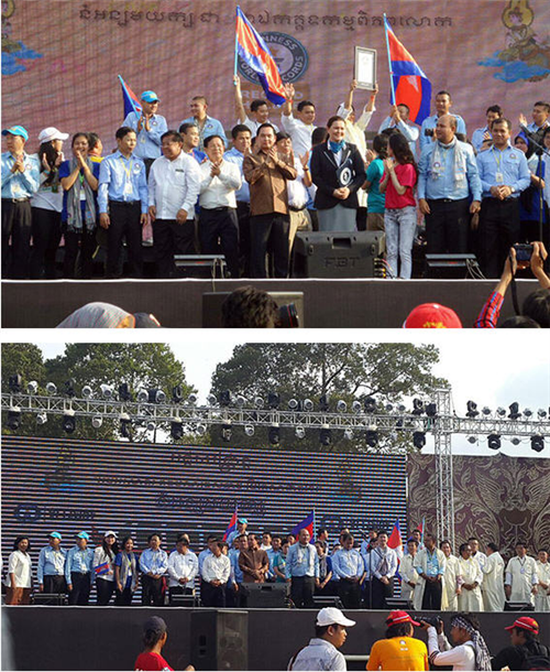 ទន្ទឹមនឹងនំ ត្រូវបានដាក់បញ្ចូលក្នុងកំណត់ត្រាពិភពលោក «Guinness World Records» ប្រជាពលរដ្ឋខ្មែររាប់ ពាន់នាក់ ជាពិសេសអ្នកក្រុងសៀមរាបអង្គរ ដោយខ្លះដង្ហែ និង ខ្លះទៀតឈរអមសងខាងផ្លូវ នាំគ្នាអបអរសាទរ ដល់នំអន្សមយក្សរបស់ខ្មែរ។