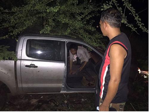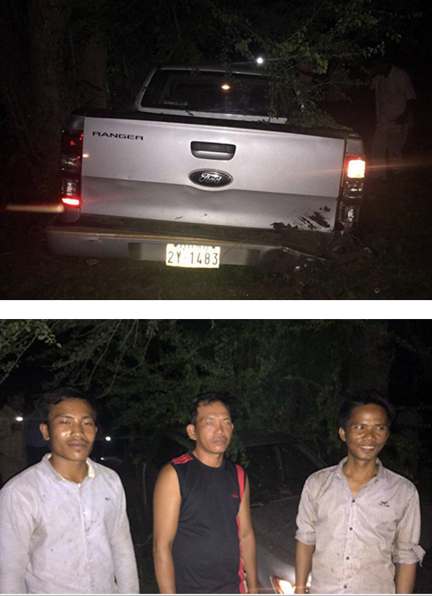 លោក ម៉ៅ ពៅ បន្តថា បន្ទាប់ពីប្លន់បានរថយន្តភ្លាមជនសង្ស័យ បានបើកសំដៅទៅទិសខេត្តព្រៃវៃង បុន្តែបន្តិច ក្រោយមកជនសង្ស័យ បានបើករថយន្តត្រឡប់ក្រោយវិញ សំដៅទៅខេត្តកំពង់ចាម ពេលនោះកម្លាំងរបស់លោក បានតាមប្រកិតពីក្រោយ។ លុះដល់ ផ្លូវកែងទួលវិហារជនសង្ស័យ បានបើកជ្រុលចង្កូតទៅបុកដើមអម្ពិលទឹកដែល នៅផ្នែកខាងឆ្វេងផ្លូវ ហើយជនសង្ស័យរត់គេចខ្លួនបាត់ទៅ។