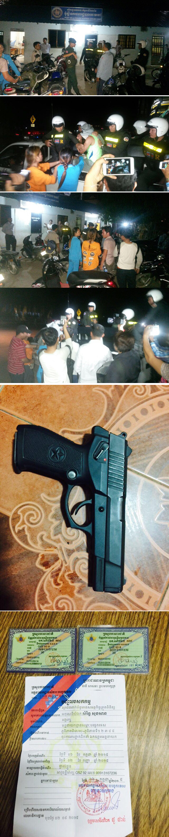 កំណត់ហេតុដដែលបញ្ជាក់ទៀតថា លុះបន្តិចក្រោយមក សមត្ថកិច្ចនគរបាល មូលដ្ឋានក៏បានមកដល់ កន្លែងកើតហេតុ ហើយប្រាប់ឲ្យបុរស ជាមន្ត្រីយោធានោះឲ្យប្រគល់ខ្ទះ ជូនលោកយាយលក់បបរវិញ តែបុរសនោះឆ្លើយថា «ខ្ទះតម្លៃ៣០០០រៀលហ្នឹង» ។ សមត្ថកិច្ចប្រាប់ទៀតថា «៣០០០រៀលក៏ដោយ តែជារបស់គាត់ (លោកយាយ) ឲ្យគាត់វិញទៅ»។ ភ្លាមនោះបុរស ដែលជាមន្ត្រីយោធា បានជេរប្រមាថសមត្ថកិច្ច រួចប្រតាយប្រតប់គ្នា និងបានទាញកំាភ្លើងនៅចង្កោះ តែត្រូវសន្តិសុខ ស្ទុះទៅចាប់ដៃ យកកាំភ្លើង ព្រោះខ្លាចផ្ទុះអាវុធ បង្កគ្រោះថ្នាក់ដល់អាយុជិវិត ប្រជាពលរដ្ឋស្លូតត្រង់។ បន្ទាប់ក្រោយមកមន្ត្រីយោធានោះ ត្រូវបានសមត្ថកិច្ចអាវុធហត្ថ ឃាត់ខ្លួន។