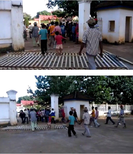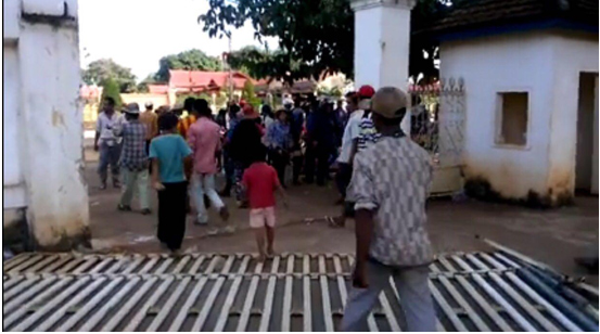 រតនគិរីៈ ប្រជាពលរដ្ឋប្រមាណ១៥០ មកពីភូមិបរឡយ ឃុំកិចុង ស្រុកបរកែវ ខេត្តរតនគិរី ដែលបានលើកគ្នា មកតវ៉ាដើម្បី ទាមទាររកយុត្តិធម៌ក្នុងករណីវិវាទដីធ្លីជាមួយលោក ហ៊ាង សុជាតិ នៅមុខសាលាដំបូងខេត្ត នៅរសៀលថ្ងៃទី២ ខែធ្នូ នេះ បាននាំគ្នាវាយកម្ទេចទ្វាររបងតុលាការ និងសំរុកចូលបរិវេណ សាលាដំបូង ដើម្បីស្វែងរកតំណាងពួកគាត់៣នាក់ ដែលត្រូវបានសមត្ថកិច្ចធ្វើការឃាត់ខ្លួន។