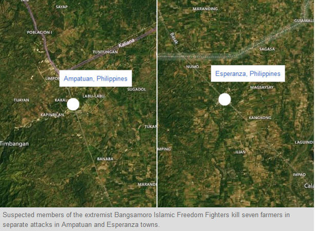 ក្រុមឧទ្ទាមម៉ូស្លីម Bangsamoro បានចាប់ក្រុមកសិករទាំង៧នាក់ ហើយក្រោយមកបានសម្លាប់ពួកគេ នៅក្នុងការវាយប្រហារជាបន្តបន្ទាប់ នៅលើកោះ Mindanao។ ក្រុមសកម្មប្រយុទ្ធនៃក្រុមឧទ្ទាមម៉ូស្លីម Bangsamoro បានបើកការវាយប្រហារ នៅតំបន់អ្នកកាន់គ្រឹស្តសាសនាផ្សេងៗពីគ្នា នៃភាគខាងត្បូង របស់ហ្វីលីពីន នេះបើតាមសម្តីលោក Ricky Bunayog មេបញ្ជាការយោធាក្នុងតំបន់ បានបញ្ជាក់ឲ្យដឹងយ៉ាងដូច្នេះ៕