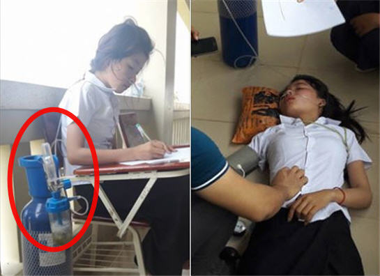 #មណ្ឌលប្រឡងសកលវិទ្យាល័យបាត់ដំបង៖ សិស្សស្រីពូកែម្នាក់បានឈឺដួលសន្លប់ និយាយមិនចេញបានត្រឹមសរសេរលើក្រដាសនូវពាក្យមួយមាត់ថា <<ឈឺ>> ហើយក៏សន្លប់ទៅ។