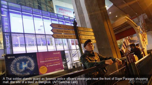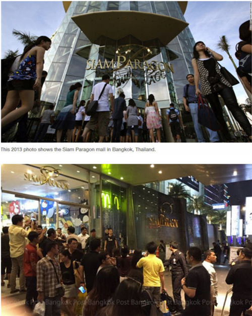 សេចក្តីរាយការណ៍ បញ្ជាក់អោយដឹងថា ករណីផ្ទុះគ្រាប់បែកច្នៃពីរគ្រាប់នេះ បាន កើតឡើងកាលពីយប់ ថ្ងៃអាទិត្យកន្លងទៅ វេលាម៉ោង ៨ យប់ នៅពីមុខផ្សារទំនើបល្បីប្រចាំក្រុង Siam Paragon ជាទីប្រជុំសំបូរ ទៅដោយភ្ញៀវទេសចរជាតិ និងអន្តរជាតិ ក៏ដូចជា ពលរដ្ឋក្នុងស្រុកជាដើម ។ ប្រភពបញ្ជាក់អោយដឹងថា បុរសពីរនាក់ រងរបួសស្រាល ក្រោយហេតុការណ៍ផ្ទុះគ្រាប់បែកកណ្តាលក្រុងលើកនេះ ។