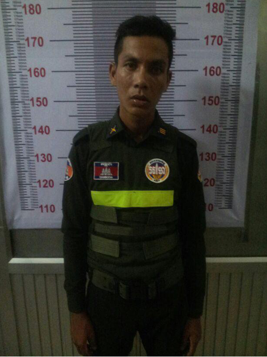 មន្រ្តីអាវុធហត្ថ ខេត្តកណ្តាល បានអោយដឹងថា ជនសង្ស័យរូបនេះ ត្រូវបានចាប់ខ្លួន កាលពីយប់ថ្ងៃទី២៣ ខែកក្កដា ឆ្នាំ២០១៥ ក្រោយពិនិត្យ និងធ្វើការឆែកឆេទៅ ពុំមានលិខិតស្នាម បញ្ជាក់ថា ខ្លួនជាមន្រ្តីអាវុធហត្ថ នោះទេ ។