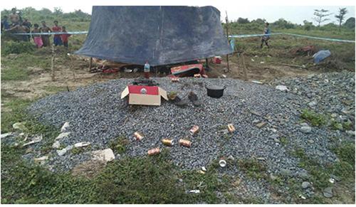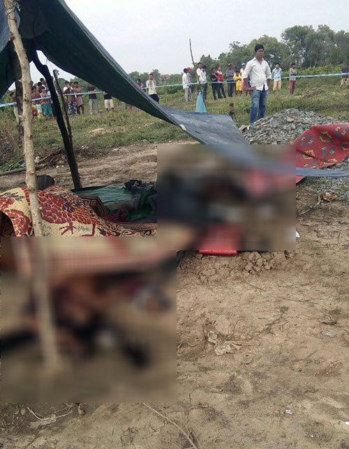 ភ្នំពេញ៖ ភ្នាក់ងារ មជ្ឈមណ្ឌលព័ត៌មាន បានរាយការណ៏មកថា នៅរសៀលថ្ងៃទី១៨ ខែតុលា ឆ្នាំ២០១៥នេះ មានការភ្នាក់ផ្អើលមួយ នៅខាងក្រោយសាលាសង្កាត់គងណយ សង្កាត់គងណយ ខណ្ឌដង្កោ ក្រោយពេលដែល ក្មេងឃ្វាលគោ បានប្រទះឃើញសាកសពមនុស្ស២នាក់ ត្រូវជនមិនស្គាល់មុខកាប់សម្លាប់ចោលយ៉ាង សហាវព្រៃផ្សៃ ដោយម្នាក់ជាមន្រ្តីនគរបាលប៉ុស្តិគងណយ ត្រូវឃាតកកាប់ដាច់ក្បាលតែម្តង។