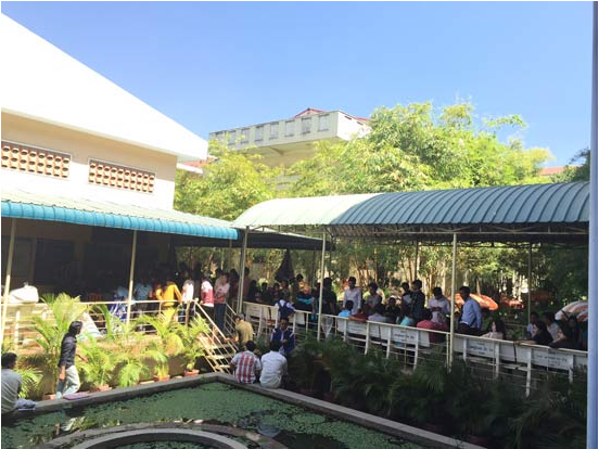អតីតនិសិ្សតច្បាប់ម្នាក់ ដែលបានទៅកក់យកមួក និងសម្លៀក បំពាក់សម្រាប់ ត្រៀមទទួលសញ្ញាប័ត្រ នាពេលខាង មុខនោះ បាននិយាយថា កាលពីព្រឹកមិញ នៅពេលទៅទទួលកក់មួក និងសម្លៀកបំពាក់ ស្រាប់តែកន្លែងទទួល កក់តូចចង្អៀត ខណៈដែល និសិ្សតមានរហូតទៅជាង៤ពាន់នាក់។ ដូច្នេះម្នាក់ៗត្រូវរង់ចាំយ៉ាងយូរ ទំរាំអាចចូលទៅ កក់ យកមួក និងសម្លៀកបំពាក់បាន ។