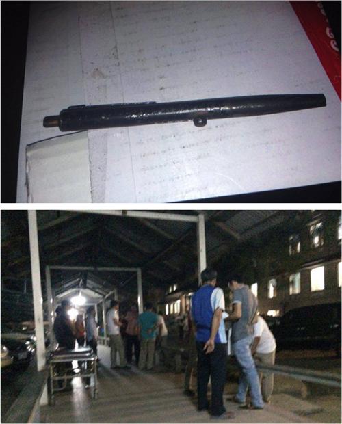 បើតាមចម្លើយសារភាពរបស់ជនសង្ស័យបានសារភាពថា ខ្លួននិងជនរងគ្រោះជាកម្មករ ដែលធ្វើការជាមួយនៅក្នុងសិប្បកម្ម សុខ ហេង។ ពេលដល់ម៉ោងសម្រាកពីការងារខ្លួន និងជនរងគ្រោះ បានអង្គុយជជែកគ្នាលេងពេលនោះ ខ្លួនបានឃើញកាបូបនៅក្នុងធុងសំរាម ចម្ងាយប្រហែល៣ម៉ែត្រ ខ្លួនក៏ដើរទៅដល់ធុងសំរាម ក៏ទាញយកកាបូបនោះ ចេញពីធុងសំរាម ហើយបើកមើលក៏ឃើញមានប៊ិច (ធ្វើអំពីដែក) ហើយក៏យកប៊ិចនោះ មកចុចសរសេរលើក្រដាសឡាំង រួចចូលទៅអង្គុយទល់មុខ ជនរងគ្រោះវិញ ចម្ងាយ១ម៉ែត្រពីគ្នា ហើយខ្លួនក៏យកមេដៃស្តាំចុចលើប៊ិចនោះ ក៏ផ្ទុះបាំងតែម្តង បណ្តាលឲ្យត្រូវជនរងគ្រោះ ពីចំហៀងខ្លួនតែម្តង។