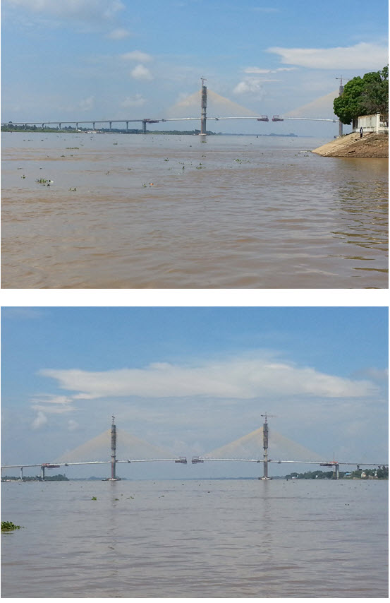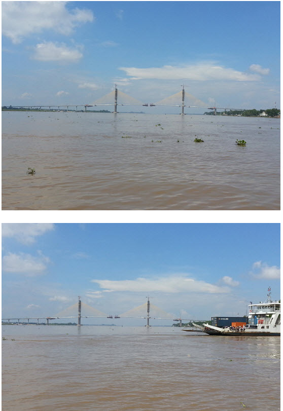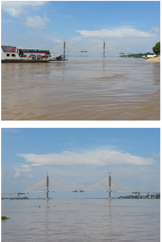 រូបថតស្ពានអ្នកលឿង ខាងក្រោមនេះ គឺថតនៅម៉ោង ១២ និង៤០នាទី ថ្ងៃទី២៦ ខែតុលា ឆ្នាំ២០១៤ ពីលើសាឡាងកំពុងចម្លង អ្នកដំណើរពីត្រើយ ខាងកើតទៅខាងលិច ៕