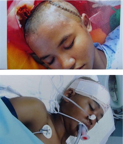 កុមារីរងគ្រោះត្រូវបានគ្រូពេទ្យបានវះកាត់ ឆ្អឹងលលាដ៍ក្បាលមួយដុំធំយកមកចិញ្ចឹមផ្សាំក្នុងពោះ ដើម្បីព្យាបាលរបួស ក្នុងខួរ ក្បាល ហើយ នៅថ្ងៃទី១០ ខែវិច្ឆិកា ឆ្នាំ២០១៥ខាង មុខនេះ គ្រូពេទ្យតម្រូវអោយនាងទីវះកាត់យកលលាដ៏ក្បាលប៉ះនិងដេរភ្ជាប់ក្បាលវិញ។