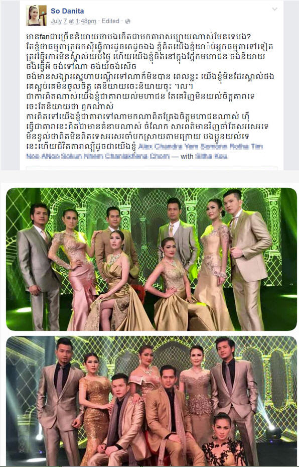 តាមរយៈសារខ្លីមួយ ដែលស្រីស្អាត សូដា នីតា បង្ហោះនៅលើបណ្តាញ ទំនាក់ទំនងសង្គម Facebook បាន សរសេររៀបរាប់ឲ្យដឹងថា «មាន fan (អ្នកគាំទ្រ)ជាច្រើន និយាយថា បងកើតមកជា តារាសប្បាយណាស់មែនទេបង? តែខ្ញុំថា ធម្មតាត្រូវរកស៊ី ធ្វើការដូចគេដូចឯង ខ្ញុំគិតយើងខ្ញុំយ៉ាប់ជាងអ្នកធម្មតាទៅទៀត ត្រូវធ្វើការងារមិនស្គាល់យប់ថ្ងៃ ហើយយើងខ្ញុំ ស្ថិតនៅក្នុងភ្នែកមហាជន ចង់និយាយ ចង់ធ្វើអី ចង់ទៅណា ចង់យំ ចង់សើច ចង់មានសង្សារស្នេហា បណ្តើរ ទៅណាក៏មិនបាន ពេលខ្លះ យើងខ្ញុំមិនដែលស្គាល់ផង គេស្អប់គេមិនចូលចិត្ត គេនិយាយចេះនិយាយចុះ ។ល។»។