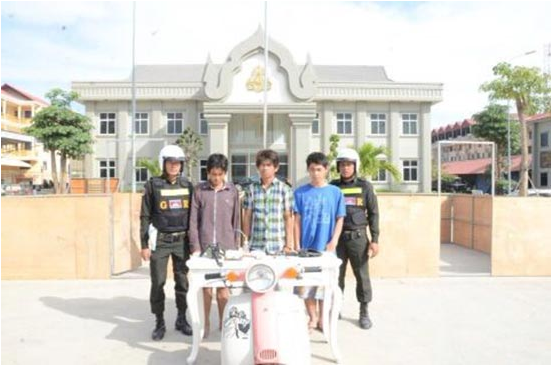 ៦- ឈ្មោះ គយ សីហា ហៅ អា ស ភេទប្រុស អាយុ ២៣ឆ្នាំ មុខរបរមិនពិតប្រាកដ ពាក់ព័ន្ធករណីប្លន់ ដោយប្រើ កំបិតតាំងតោ និងកូនកំាបិត គម្រាមយក ចិញ្ចៀនមាស១វង់ ខ្សែកប្លាទីន១ខ្សែ ទូរស័ព្ទដៃសាំសុង ១គ្រឿង និង កាបូបដៃ១ មានលុយ១ម៉ឺនរៀល ពីជនរងគ្រោះឈ្មោះ សំបុក រ៉ាវី ភេទប្រុស អាយុ ២៣ឆ្នាំ នៅចំណុចច្រមុះជ្រូក អគ្គិសនីវត្តភ្នំ រួចគេចខ្លួនបាត់ បន្ទាប់មកត្រូវបានសមត្ថកិច្ចឃាត់ខ្លួនបាននៅចំណុចលើវត្តភ្នំ។
