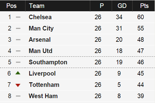 គូសបញ្ជាក់ឡើងវិញផងដែរថា ថ្វីត្បិតតែ Arsenal កំពុងតែ ឈរជើងលំដាប់ថ្នាក់ទី ៣ មែន តែពិន្ទុក្រុម នៅមិនទាន់មានប្រៀបដាច់ពីក្រុមដែល ស្ថិតនៅក្រោមខ្លួននោះទេ ពោលក្នុងចំណោម ៣ ក្រុមខាងក្រោមបន្ទាប់ សុទ្ធសឹងតែមានឱកាសអាចដណ្ដើមតំណែង Arsenal វិញគ្រប់ពេលវេលា ប្រសិនជាក្រុម ហ៊ានតែភ្លេចខ្លួនបរាជ័យ ត្រឹមតែមួយប្រកួត ។