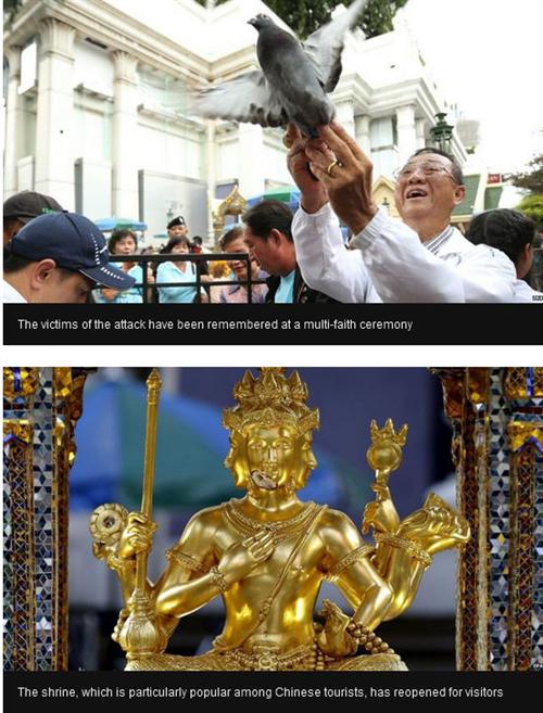 មន្រ្តីពាក់ព័ន្ធរបស់ប្រទេសថៃ កំពុងតែតាមប្រមាញ់ជនសង្ស័យអទិភាព ជាបុរសម្នាក់ដែលត្រូវបាន គេមើលឃើញថា ទម្លាក់កាបូបស្ពាយចោល នៅកន្លែងកើតហេតុ នាយប់ ថ្ងៃច័ន្ទ ដោយបានសម្លាប់ មនុស្សហោចណាស់ ២០ នាក់ ។ នាយករដ្ឋមន្រ្តីចាំផ្ទះ លោក ប្រាយុទ្ធ ចាន់អូចា អោយដឹងថា ប្រតិ បត្តិការស៊ើបអង្កេត កំពុងតែធ្វើឡើងយ៉ាងសស្រាក់សស្រាំ ។ពិធីរំលឹកវិញ្ញាណក្ខ័ន្ធជនរងគ្រោះស្លាប់ ត្រូវបានគេធ្វើឡើង នៅកន្លែងកើតហេតុ អំឡុងថ្ងៃសុក្រ ម្សិល មិញនេះ ។ មានភស្តុតាងតិចតួចតែ ប៉ុណ្ណោះដែលប្រមូលបានពីការវាយប្រហារ លើកនេះ ខណៈ លោក Prayuth បានហៅការវាយប្រ ហារលើកនេះ ថាជាការវាយប្រហារ អត្តឃាត គ្រោះថ្នាក់ បំផុត ។