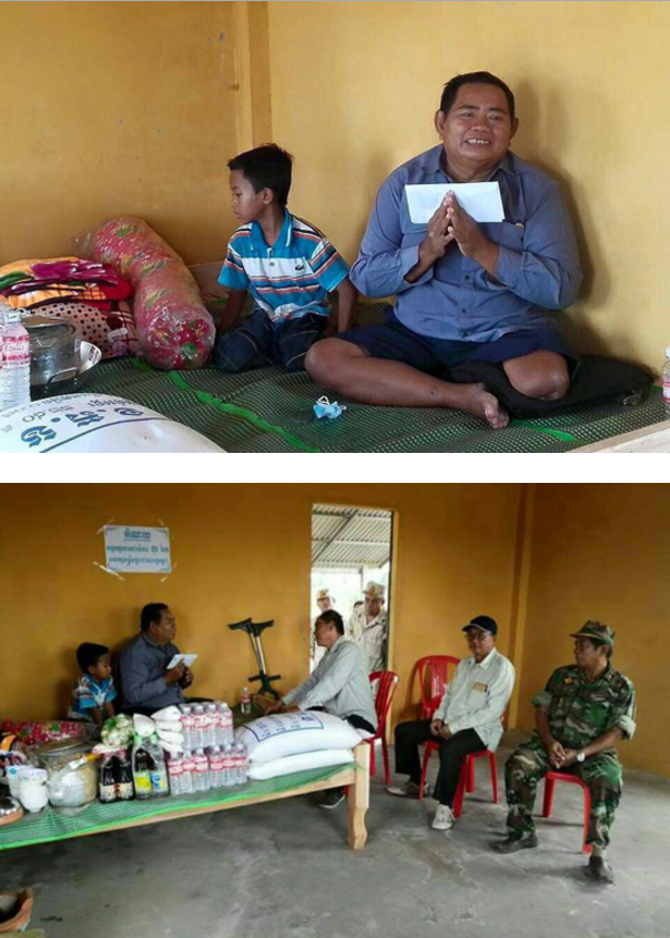 អង្គុយក្នុងផ្ទះជាមួយកូនៗនិងភរិយារបស់ ខ្លួន បុរសជនពិការរូបនេះ បានបង្ហាញក្ដីរំភើប ឥតឧបមាលាយ ឡំនិងទឹកភ្នែក រលីងរលោង ថ្លែងអំណរគុណយ៉ាងជ្រាលជ្រៅ ចំពោះទឹក ចិត្ដសណ្ដោសប្រណី យ៉ាងពន់ពេករបស់ សម្ដេចនាយករដ្ឋមន្ដ្រី និងសម្ដេចកិត្ដិព្រឹទ្ធ បណ្ឌិត ដែលបានយកចិត្ដទុកដាក់ លើជនពិការ នៅកម្ពុជា បើទោះបីជួបការលំបាកនិងស្ថិតក្នុង ស្ថានភាពយ៉ាងណានោះ ៕