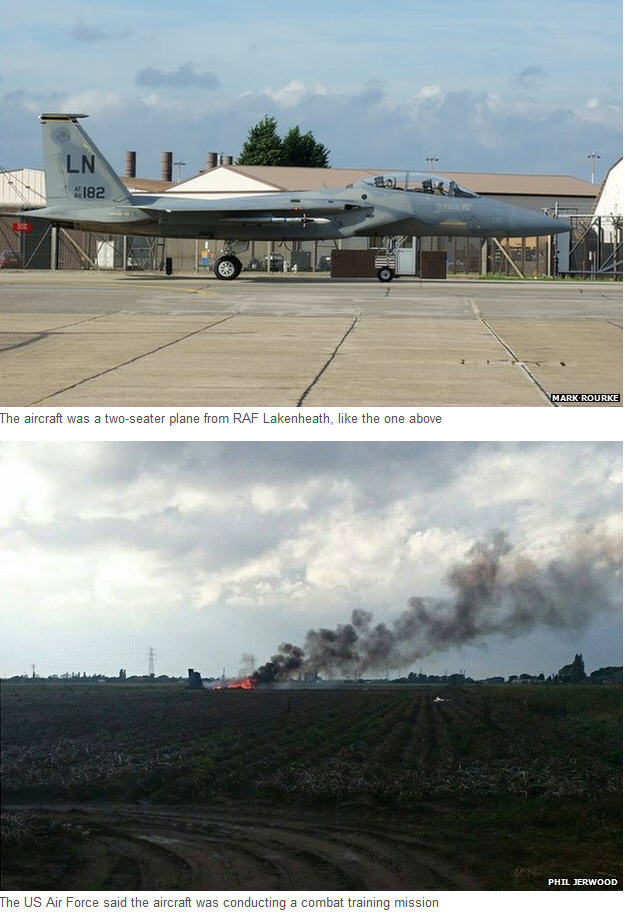 គួរបញ្ជាក់ថា យន្តហោះចម្បាំងយោធា ដែលបានធ្លាក់នោះ ជាប្រភេទយន្តហោះ F-15 មានវត្តមានចេញ ពីមូលដ្ឋានទ័ពអាកាស សហរដ្ឋអាមេរិក នេះបើយោងតាមសម្តីមន្រ្តី ពីនាយកដ្ឋាន ការពារជាតិ សហរដ្ឋ អាមេរិក ផ្តល់ជាកិច្ចសម្ភាសន៍ ដល់ទំព័រ ស៊ីអិនអិន ដោយស្នើសុំមិនបញ្ចេញឈ្មោះ ។ ដោយឡែក មន្រ្តី ប៉ូលីសប្រចាំកន្លែងកើតហេតុ នៃទីវាលធ្លាក់យន្តហោះ តំបន់ Lincolnshire ភាគ ខាង កើត ប្រទេសអង់ គ្លេសពុំទាន់អាចបញ្ជាក់បាននៅឡើយទេ ថាតើ យន្តហោះចម្បាំងខាងលើ ជា របស់ ប្រទេសណាអោយ ពិតប្រាកដ ក៏ដូចជា មិនទាន់បានបញ្ជាក់អោយដឹងដូចគ្នាដែរ ពី អត្តសញ្ញាណ នៃអ្នកបើកបរ ឈ្មោះ ក៏ ដូចជា សញ្ជាត្តិជាដើម ។