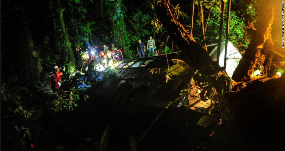 ព័ត៌មានអន្តរជាតិ ៖ រថយន្ត ក្រុង ធុនធំមួយគ្រឿង ដឹកមនុស្សជិត ៥០នាក់ បានរអិលធ្លាក់ចូលក្នុង ជ្រលង ក្បែរដងផ្លូវ នៅប្រទេស ប្រេស៊ីល កាលពីថ្ងៃទី១៥ ខែ មីនា ឆ្នាំ២០១៥ បណ្តាលឲ្យអ្នកដំណើរ នៅលើនោះទាំងអស់ បាត់បង់ជីវិត គួរឲ្យសង្វេគ ជាទីបំផុត ។