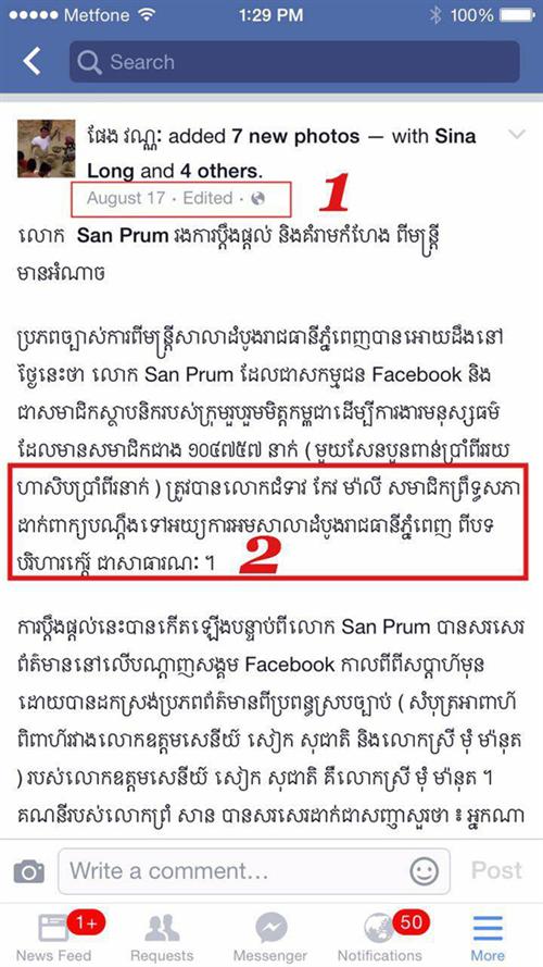 លោក ព្រំ សាន្ត និងលោកស្រី មុំ ម៉ានុត ត្រូវបានលោកស្រី កែវ ម៉ាលី ប្តឹងពីបទបរិហារកេរ្តិ៍ជាសាធារណៈ បន្ទាប់ពីបានសរសេរបង្ហោះរិះគន់ លោកស្រី កែវ ម៉ាលី នៅលើបណ្តាញសង្គម Facebook ថាមានសាហាយស្មន់ ជាមួយលោក សៀក សុជាតិ។