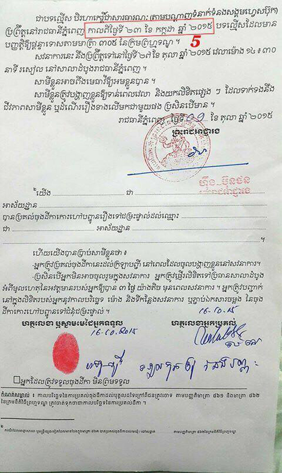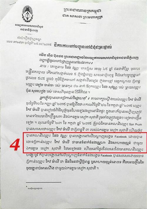 ភ្នំពេញ ៖ សាលាដំបូង រាជធានីភ្នំពេញ នៅរសៀលថ្ងៃទី០២ ខែវិច្ឆិកានេះ បានបង្វែឱ្យមាន ការស៊ើបអង្កេតជាថ្មី ទៅលើគណនី Facebook លោក ផែង វណ្ណៈ មន្រ្តីក្រសួងមហាផ្ទៃ និងជនសង្ស័យម្នាក់ទៀត លោកស្រី ហង្ស បុរី ជុំវិញករណីបរិហារកេរ្តិ៍លើលោកស្រី កែវ ម៉ាលី សមាជិកព្រឹទ្ធសភា នៅលើបណ្តាញ ទំនាក់ទំនងសង្គម Facebook។